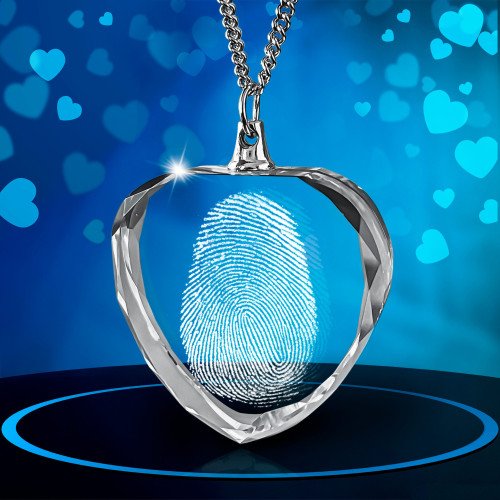 Keep your beloved ones close to your heart with a custom made crystal necklace engraved with their unique fingerprint.
