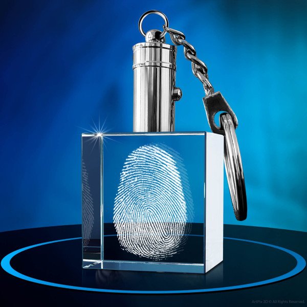 LED Crystal Fingerprint Keychain Square