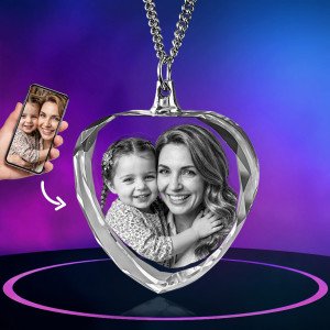 Are you looking for a jewelry gift that reflects the unique love in your heart? A heart-shaped crystal necklace personalized with a meaningful photo is a one-of-a-kind way to show the special someone in your life just how much they mean to you. Choose a picture of your favorite moment together, and our laser etching technology will recreate it as a beautiful 3D engraving inside this heart-shaped crystal pendant. This custom 3D photo necklace is perfect for Mother’s Day and wedding anniversaries, or just a spontaneous gift to say “I love you.”