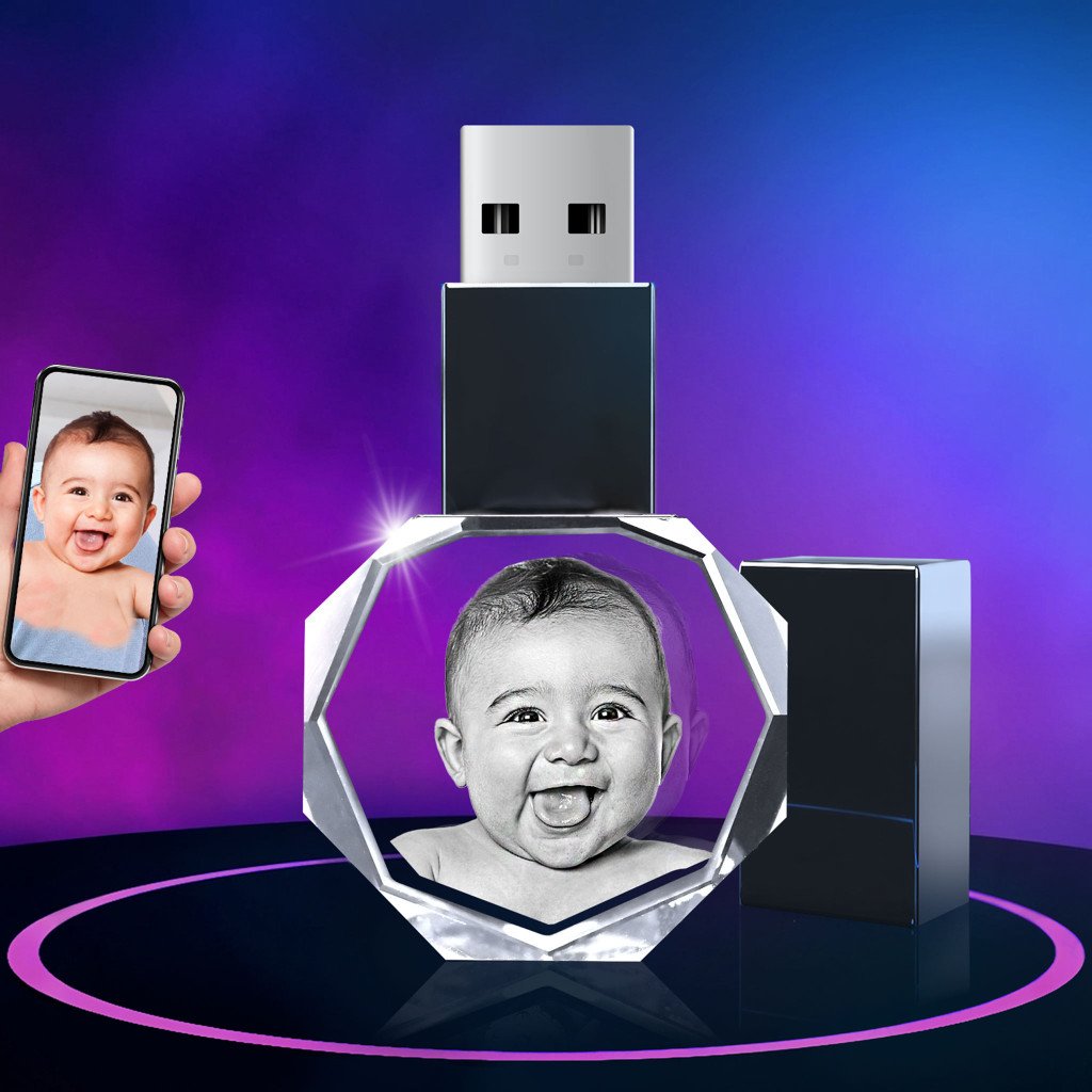 Are you looking for a unique way to display a loved one’s photo in your workplace or home office? You can capture a favorite memory in a detailed crystal engraved inside our personalized USB Flash Drive Octagon! Storage: 16GB; read Speed: 25mb/s; write Speed: 10mb/s; equipped with white LED light; comes with a polished chrome cover.