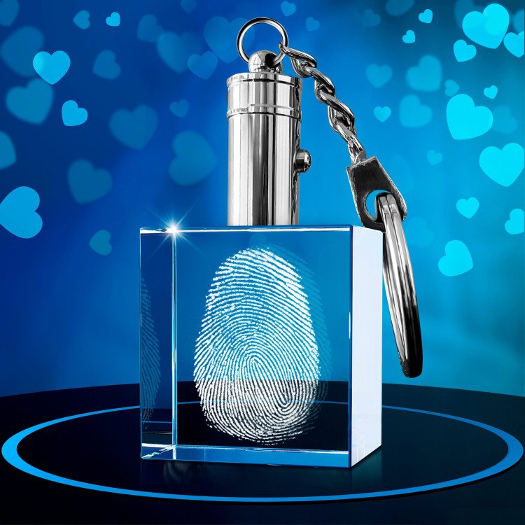 LED Crystal Fingerprint Keychain Square