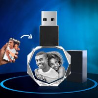 Memories are precious, and so is your data. Our Crystal USB Flash Drives are designed to keep them both safe! Using subsurface laser engraving technology, we can recreate your photo in stunning detail inside a beautiful crystal charm attached to your drive. When you plug it into the USB port on your computer, a brilliant LED bulb will illuminate your image and bring it to life!