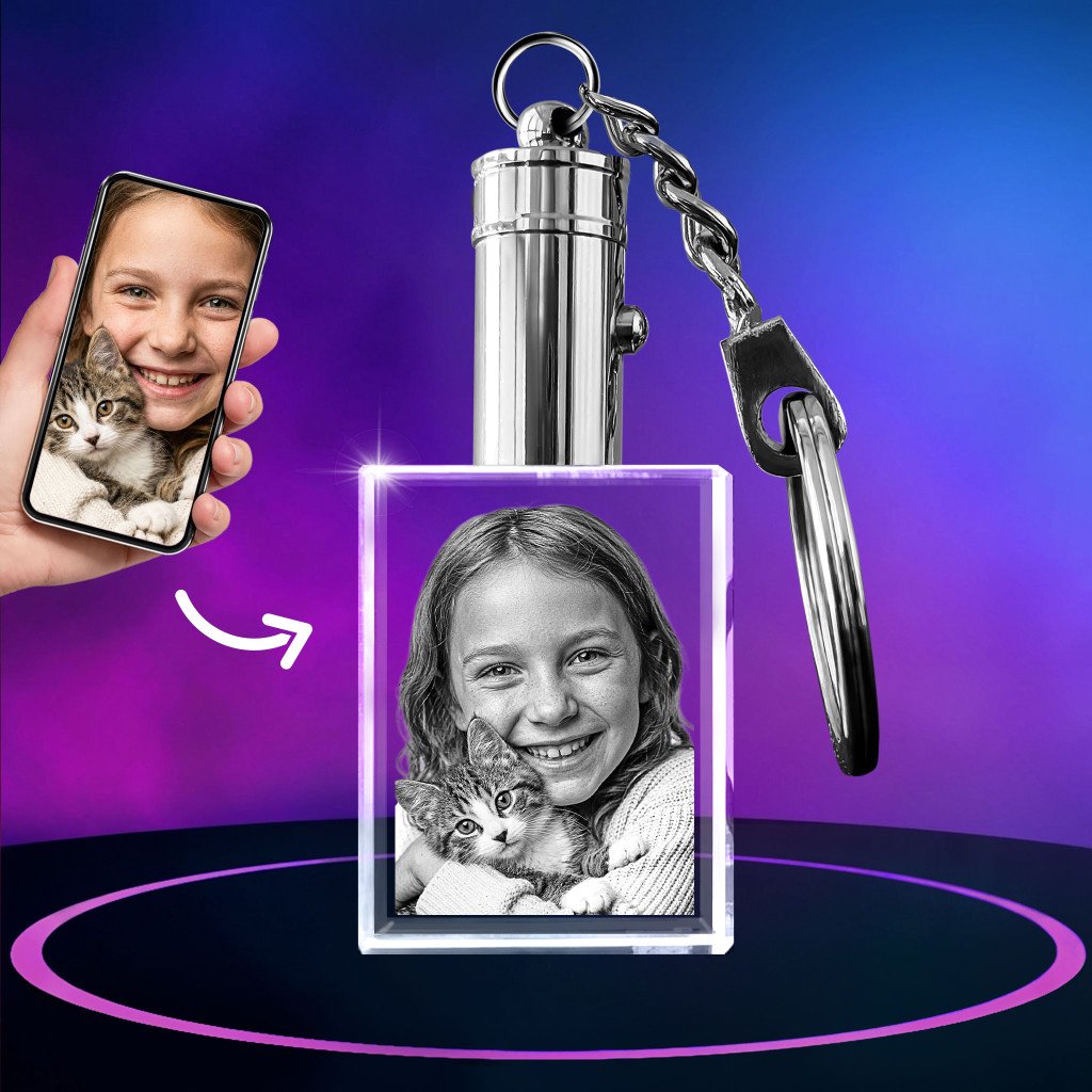 Where do you keep your favorite photos of the people and pets you love? If you’re looking for a better way to remember someone you care about, create a personalized photo keychain at ArtPix 3D! Our 2D Keychain Rectangle lets you turn a special picture into a custom engraved crystal charm you can easily attach to your set of keys. The best part? It comes with a battery-operated LED light feature to illuminate your image!