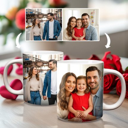 Our custom mug printing process uses the latest in sublimation printing technology to put pictures on coffee mugs and ensure your favorite photos never peel or fade in the microwave or dishwasher. Add up to 5 photos, align them just the way you like, and add text, then get ready to sip in style.