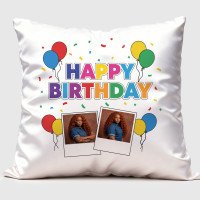 2 Photo Birthday Square Pillow Cover