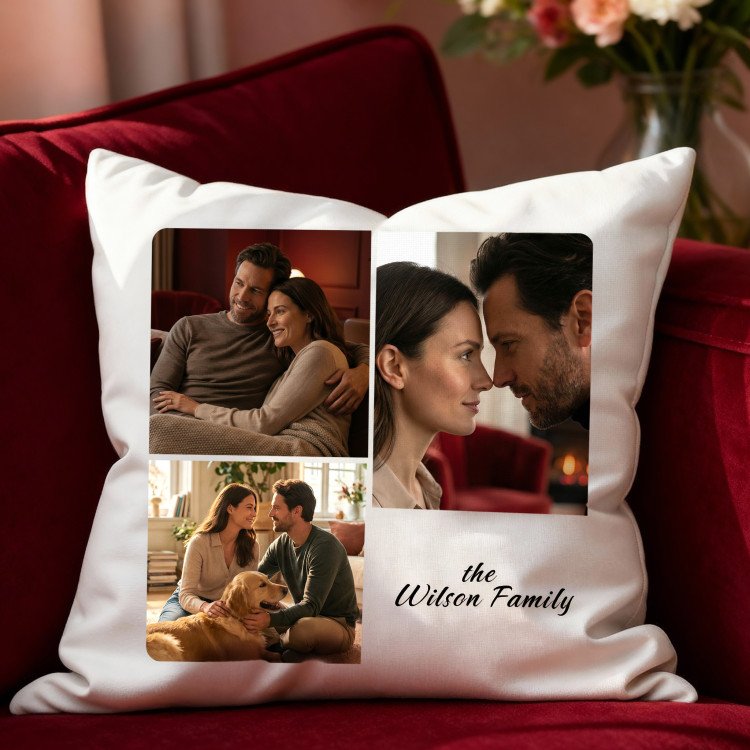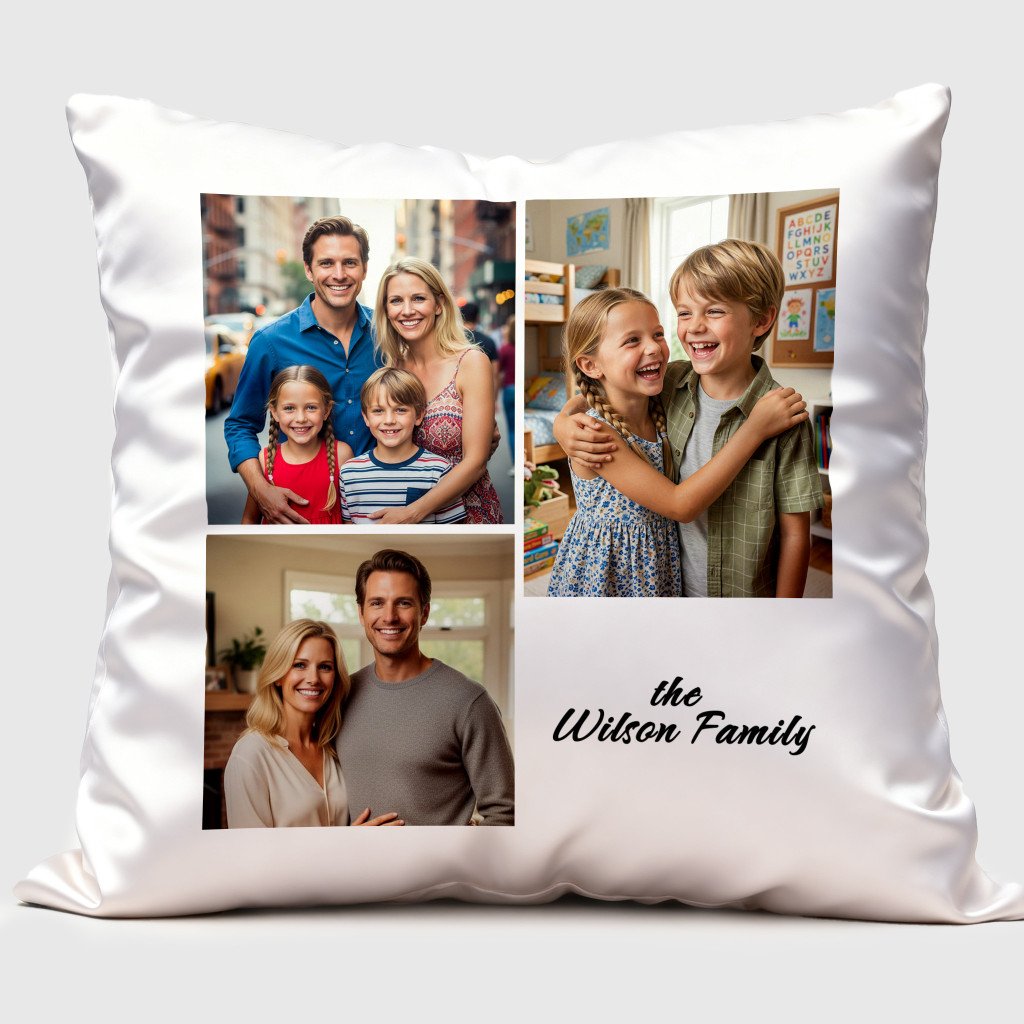 3 Photo Collage Square Pillow Cover