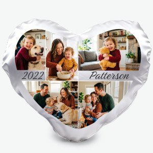 5 Photo Collage Heart Photo Pillow Cover