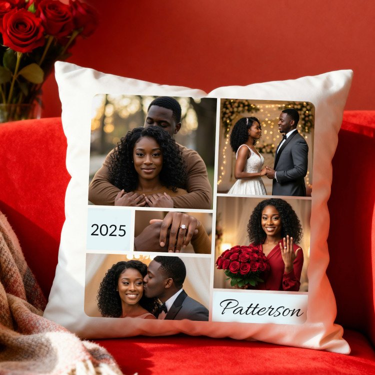 5 Photo Collage Square Pillow Cover