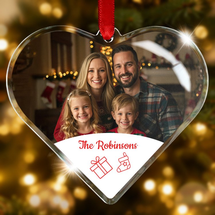 Family Photo Glass Heart Ornament