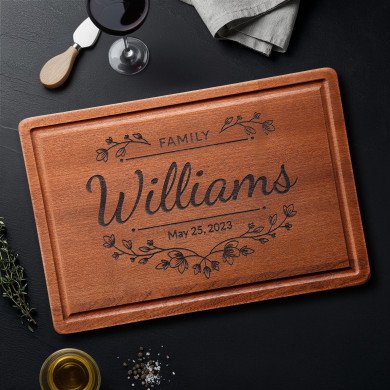 From the heart of the kitchen, your story is told with every meal, shared moment, and treasured memory. Our personalized acacia cutting board celebrates your story. With its clean lines and rich, natural grain, this timeless piece will serve as a constant reminder of the people and moments you cherish. This is more than a board; it's a keepsake designed to be a part of your daily life.