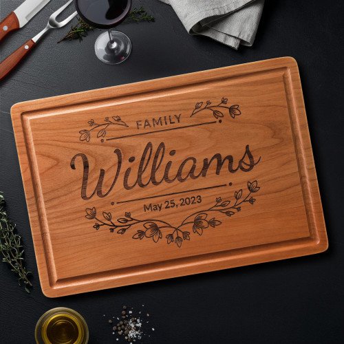 From the heart of the kitchen, your story is told with every meal, shared moment, and treasured memory. Our personalized cherry cutting board celebrates your story. With its clean lines and rich, natural grain, this timeless piece will serve as a constant reminder of the people and moments you cherish. This is more than a board; it's a keepsake designed to be a part of your daily life.