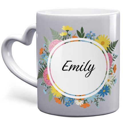 Floral Wreath Photo Mug | Heart Handle