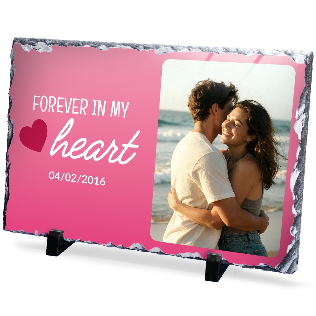 Say ‘goodbye’ to standard custom picture frames and ‘hello’ to custom rock slate frames! To make a custom slate photo frame, we use the latest in sublimation printing technology, ensuring your favorite slate pictures never peel or fade. Choose one of our premium custom templates, upload a photo, align and set your photo on the slate just the way you like, add text, and get ready to add functional home decor with a modern touch to your favorite spaces. It’s that easy to make a slate photo print.
