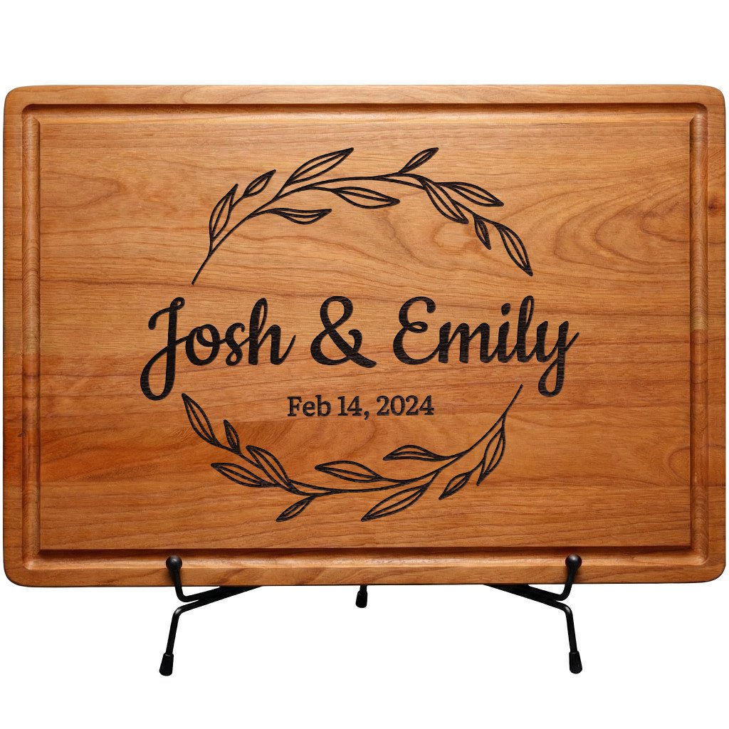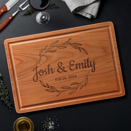 We understand that the best gifts are both beautiful and useful. Our large or small cherry cutting board is a testament to this, crafted from a solid cutting board of cherry wood that is both durable and stunning. We have meticulously prepared each piece to be the perfect canvas for your custom message or monogram. Our professional laser-engraving cherry cutting board service ensures that your design is etched with perfect detail into the wood. The unique grain patterns of the wood provided by our US-based cherry cutting board manufacturer, and the clean lines of the engraving, create a beautiful contrast, making this a truly unforgettable piece.