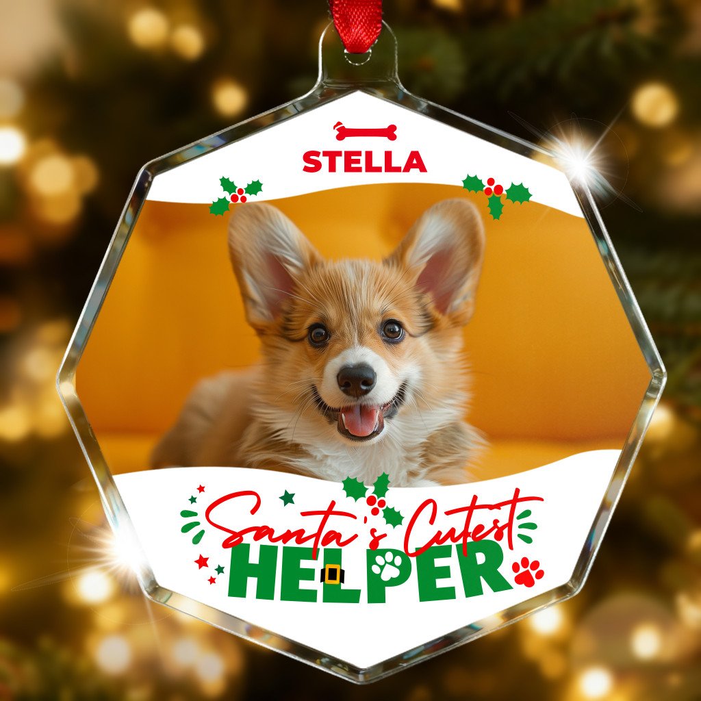 Santa Pet Photo Glass Octagon Ornament